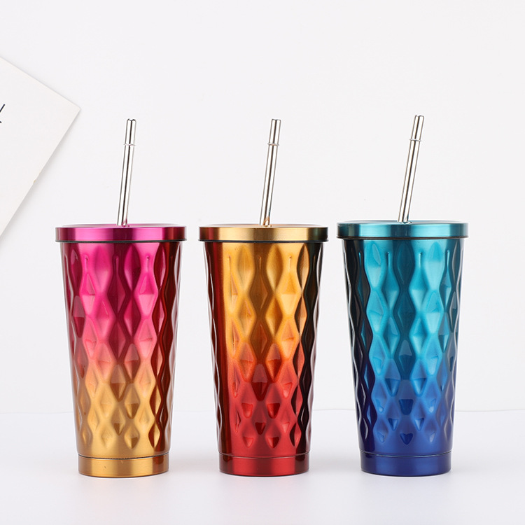 كوب القش المصنوع من الفولاذ المقاوم للصدأ على شكل ماسة بسعة 500 مل