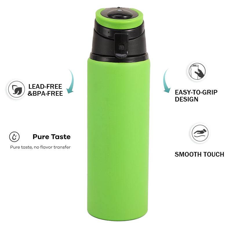 زجاجة المياه الرياضية الأنيقة المصنوعة من الألومنيوم بسعة 710 مل مدروسة للغاية في تصميمها. السعة الكبيرة 710 مل يمكن أن تلبي احتياجات الشرب أثناء ممارسة الرياضة الخارجية الطويلة أو اللياقة البدنية أو السفر، وتقلل من مشكلة الترطيب المتكرر.