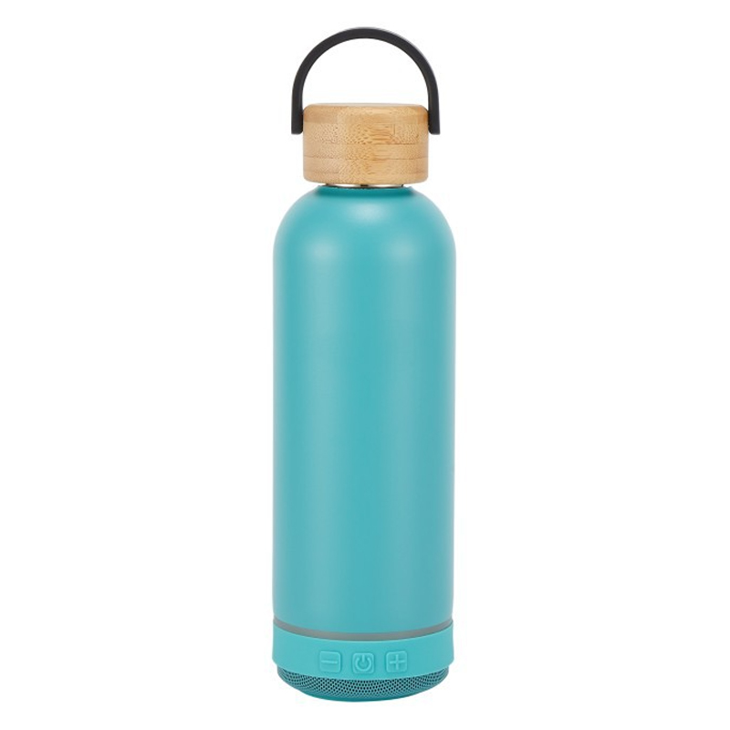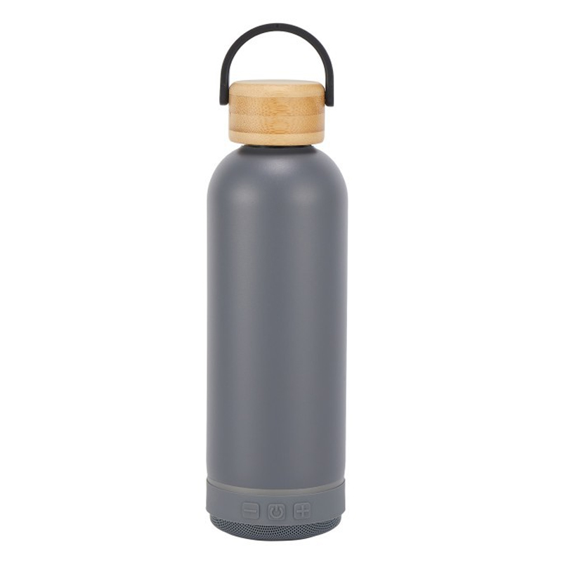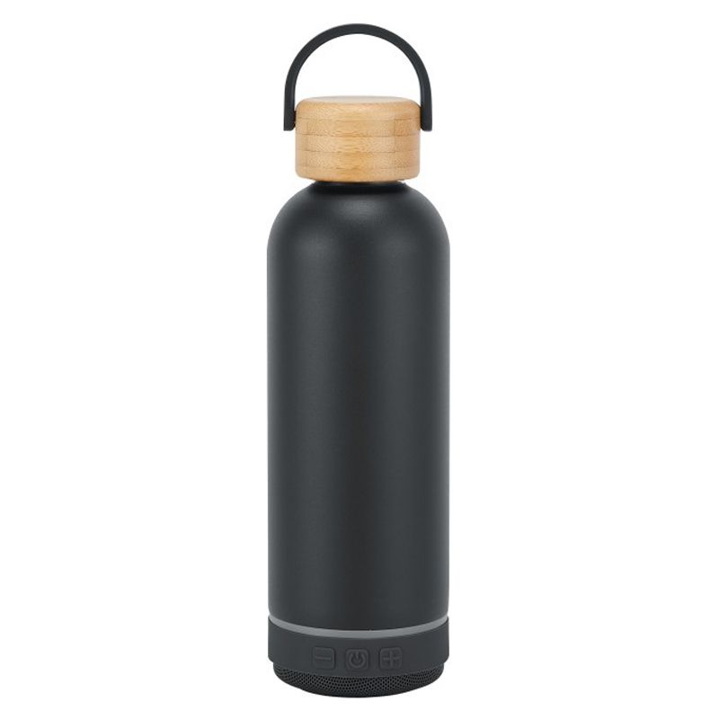 وصف المنتج: زجاجة معزولة لسماعات بلوتوث بغطاء من الخيزران - ارتشف واشرب وابق منتعشًا بأناقة