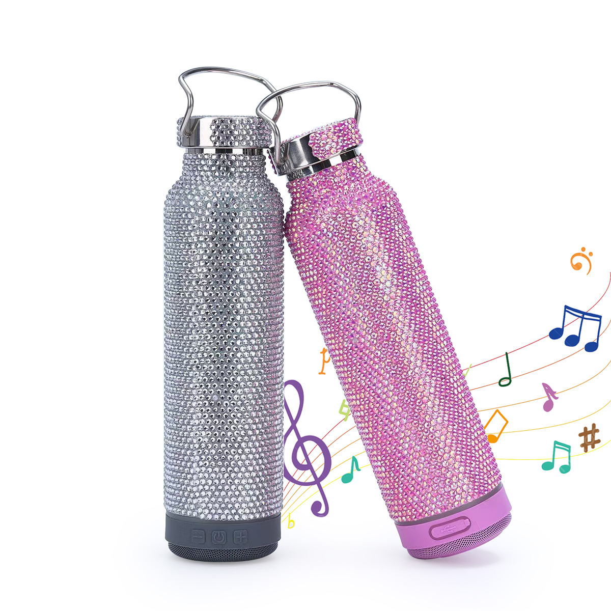 زجاجة مياه معزولة مع مكبر صوت بلوتوث قابل للشحن