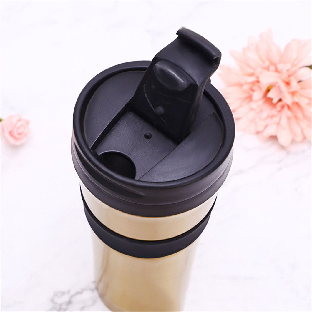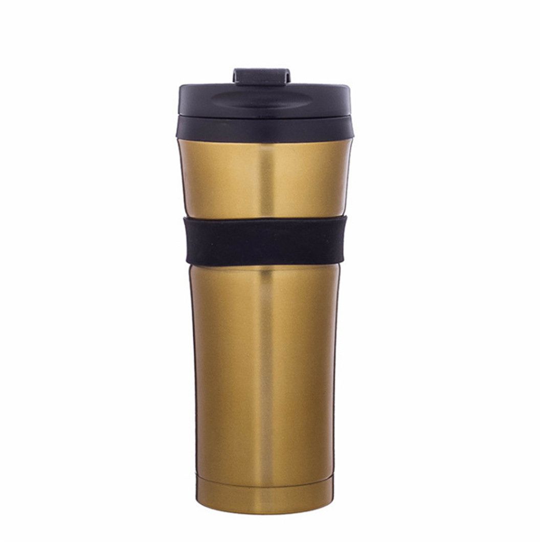 تأتي هذه الحرارية الفولاذية غير القابل للصدأ في التشطيبات الذهبية والأسود والفضي ، مع توفر خيارات التخصيص. يتميز بغطاء أسود أنيق وحلقة مطاطية سوداء متينة في الوسط تمنع الانزلاق ويحمي الكأس ، فهو مثالي لحمل المشروبات اليومية مثل القهوة أو الماء الساخن.