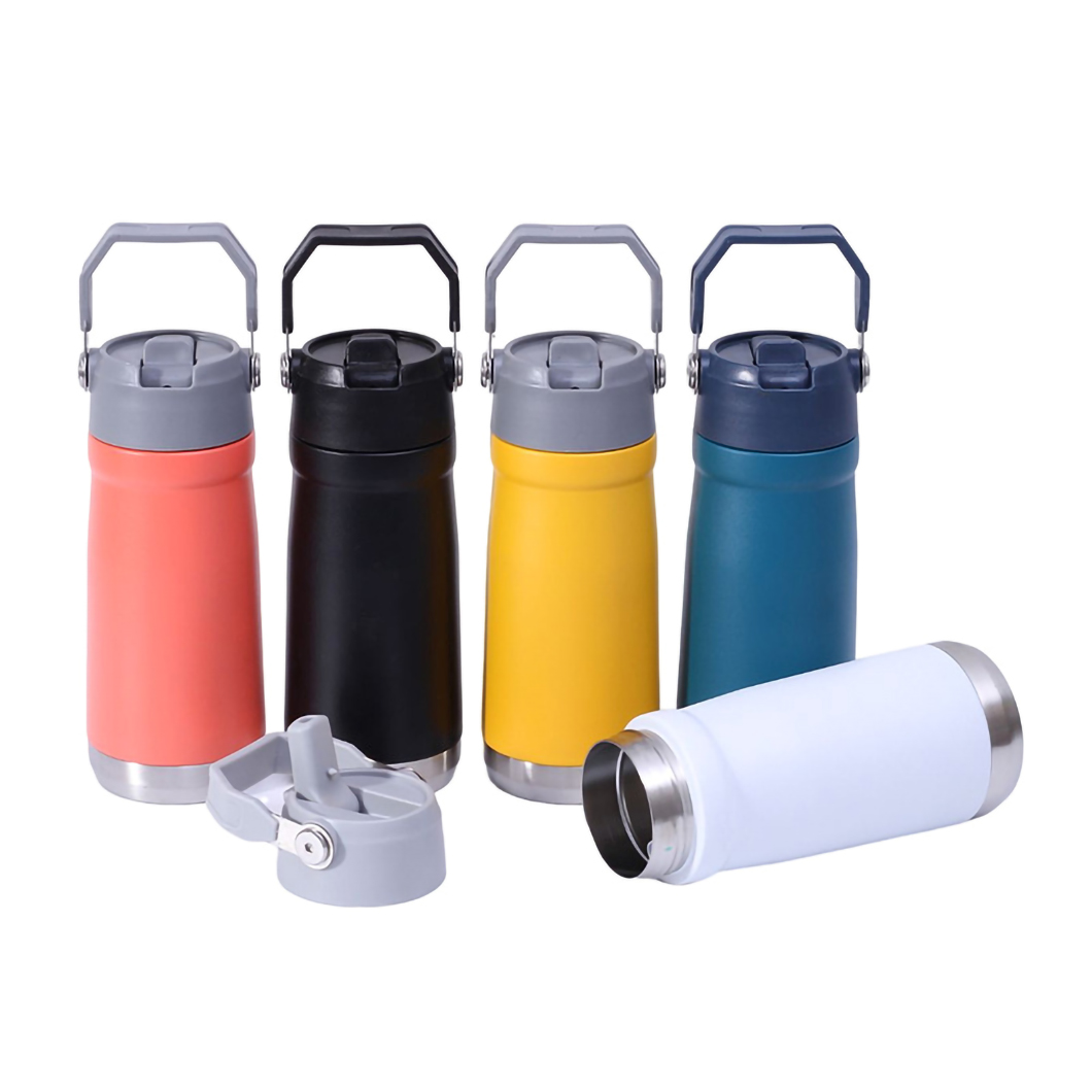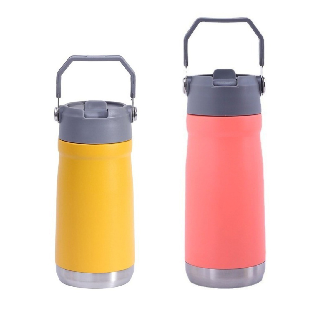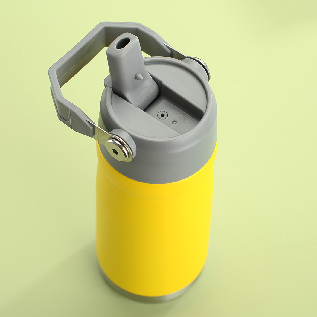 كوب تسربات مقاوم للتدفق غير القابل للصدأ مع القش والمقبض