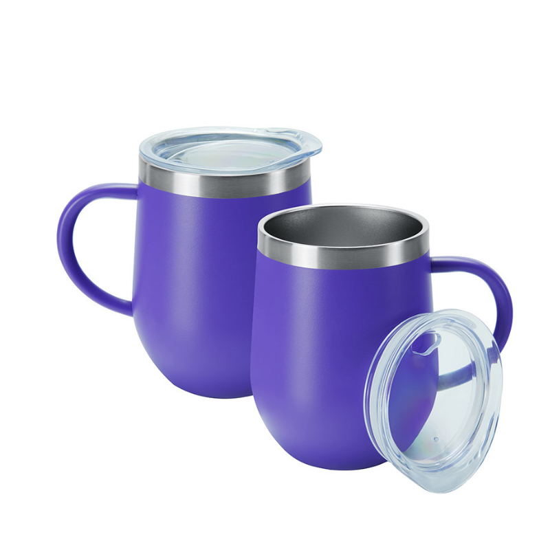 يأتي الكأس بمقبض ، وإنهاء معدني ، وغطاء شفاف ، وقش معدني. عادة ما يتم تصميم هذه الأكواب للحفاظ على المشروبات دافئة أو باردة لفترات طويلة من الوقت ، مع مقابض تجعلها أكثر راحة.