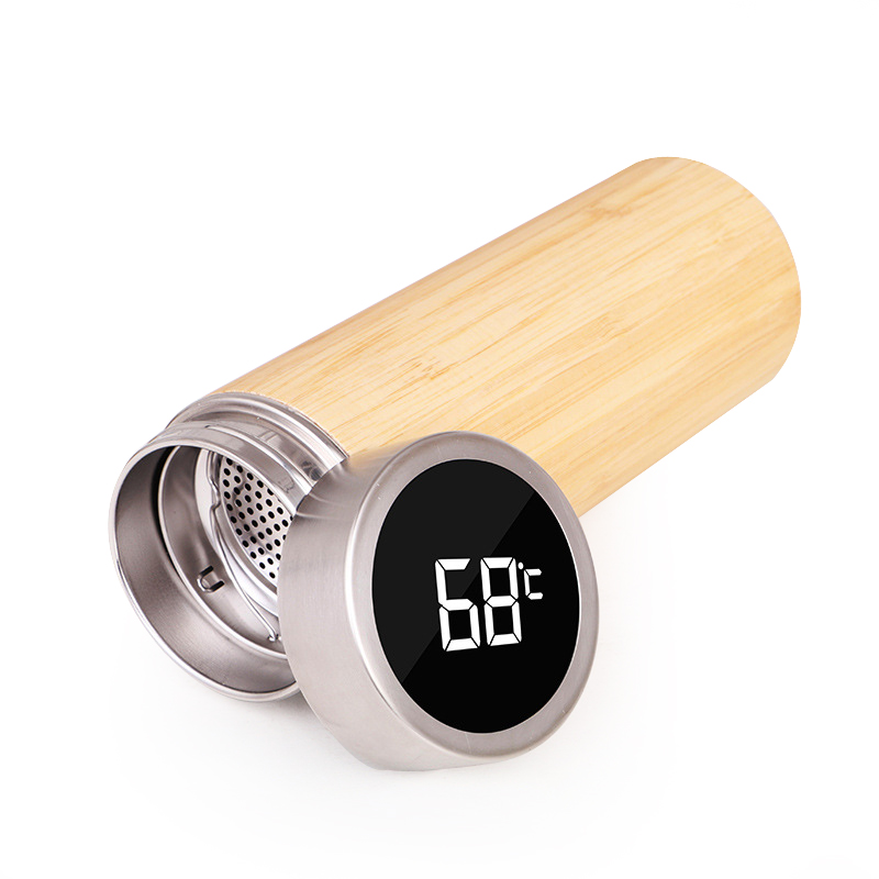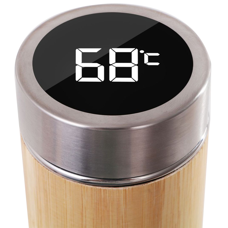 كوب معزول بنمط الخيزران مع غطاء لعرض درجة الحرارة