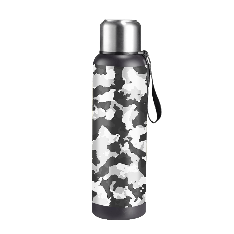 يبلغ ارتفاعه 30 سم وقطره 9 سم ، بسعة 1100 مل. مصنوع من الفولاذ المقاوم للصدأ ، يمكن أن تبقي المشروبات الساخنة أو الباردة بشكل فعال لفترة طويلة. يوجد حزام أسود متصل به ، مما يجعل من المريح أن يحمله ، مناسب للاستخدام اليومي أو السفر أو الأنشطة الخارجية.