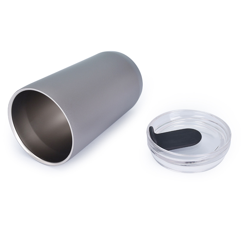 حافة الكوب والجسم: الحافة المصنوعة من الفولاذ المقاوم للصدأ ناعمة، والجسم رمادي بملمس ناعم. يضمن هذا التصميم السلامة ويحسن مظهر المنتج وملمسه.